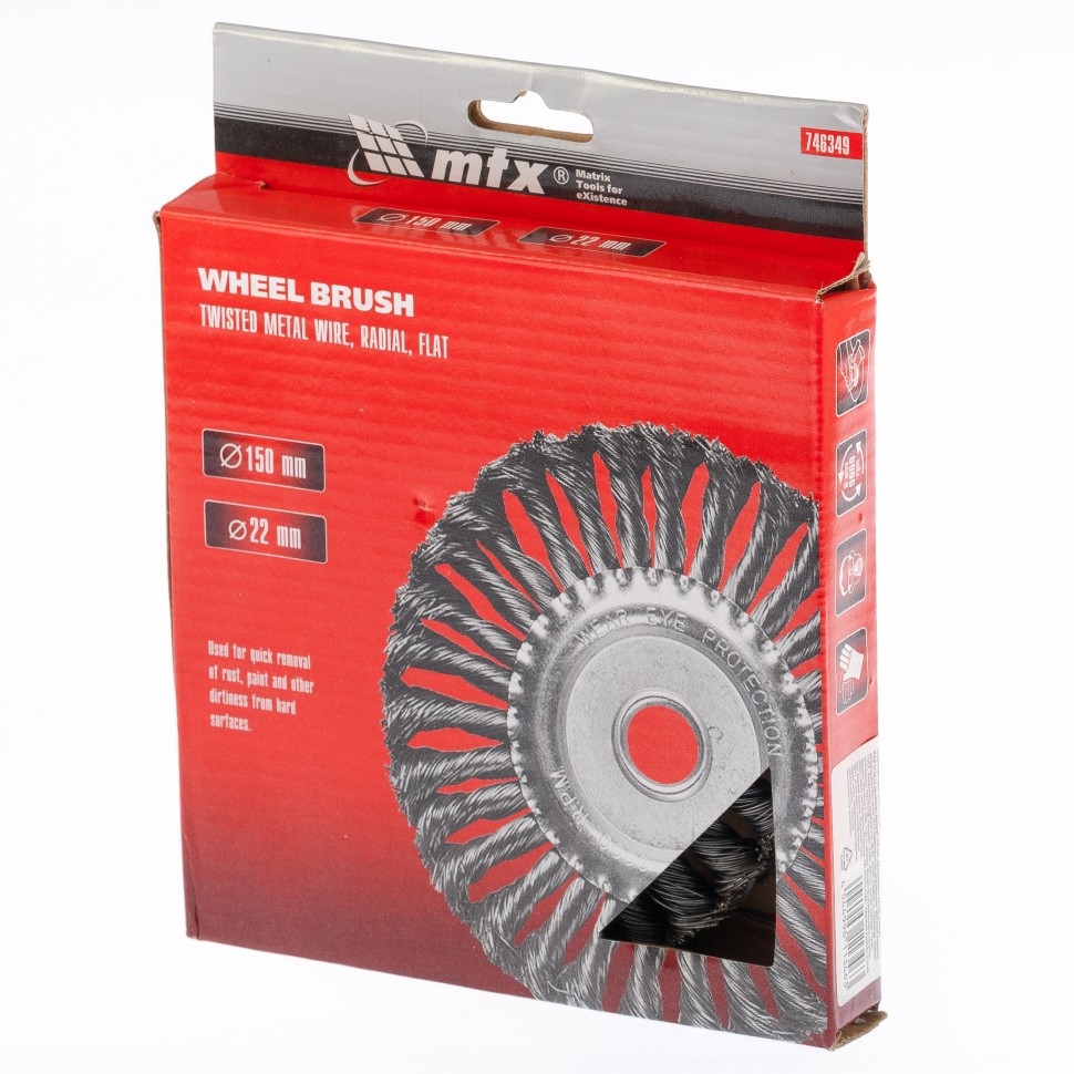 Щетка для УШМ "Плоская", кручен.проволока 0,5мм, 150 мм посадка 22,2мм Matrix