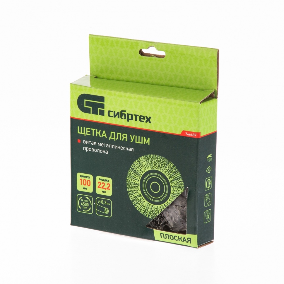 Плоская щетка для УШМ Сибртех 746487 диаметром 100 мм, с посадкой 22,2 мм, с щетиной из витой проволоки, предназначена для щадящей очистки твердых поверхностей от загрязнений, ржавчины, остатков краски и других покрытий. Щетина из проволоки толщиной 0,3 мм постепенно снимает тонкий слой материала. Плоская форма щетки делает ее оптимальным инструментом для обработки внутренних углов, пазов, изгибов и малодоступных мест. Щетка позволяет придать шероховатость или подчеркнуть структуру материала. Насадка устанавливается на фланец углошлифовальной машины и подходит для продолжительной работы, не требующей частой смены оснасток. Рекомендуемая максимальная скорость вращения составляет 4500 об/мин. Для обеспечения безопасности оператора следует использовать средства индивидуальной защиты. Щетка применяется в строительной, производственной сфере, а также в быту. Преимущества Благодаря витой проволоке щетина хорошо держит форму. Проволока из высококачественной стали обеспечивает щетке высокий ресурс работоспособности