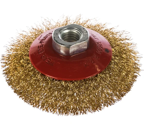 Щетка Matrix «тарелка» 74608 диаметром 100 мм, с щетиной из латунированной витой проволокой и гайкой М14, — насадка для УШМ, использующаяся для удаления с поверхностей ржавчины и загрязнений, старого слоя ЛКМ. Рекомендованная скорость вращения — не более 12500 об/мин. Щетка является универсальным инструментом, позволяющим обрабатывать как большие плоские поверхности, так и углы.