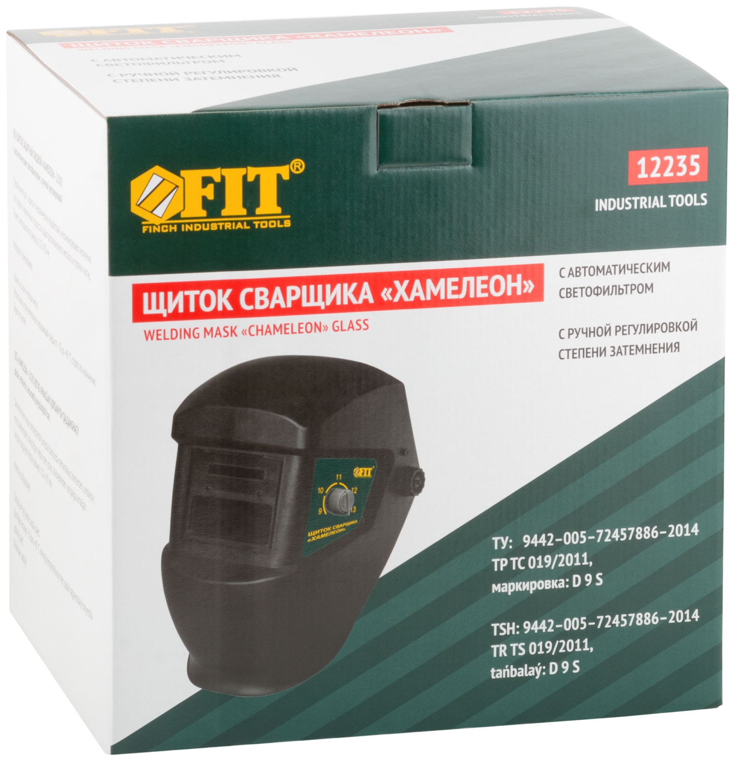 Щиток сварщика с автоматическим светофильтром «Хамелеон». Для защиты глаз и лица от вредного воздействия излучения сварочной дуги во время проведения сварочных работ. Светофильтр с автоматическим затемнением. Степень затемнения DIN 9-13 (плавная регулировка ), в режиме ожидания DIN 4. Оголовье с плавной регулировкой. Материал: полипропилен. Упаковка: цветная коробка.