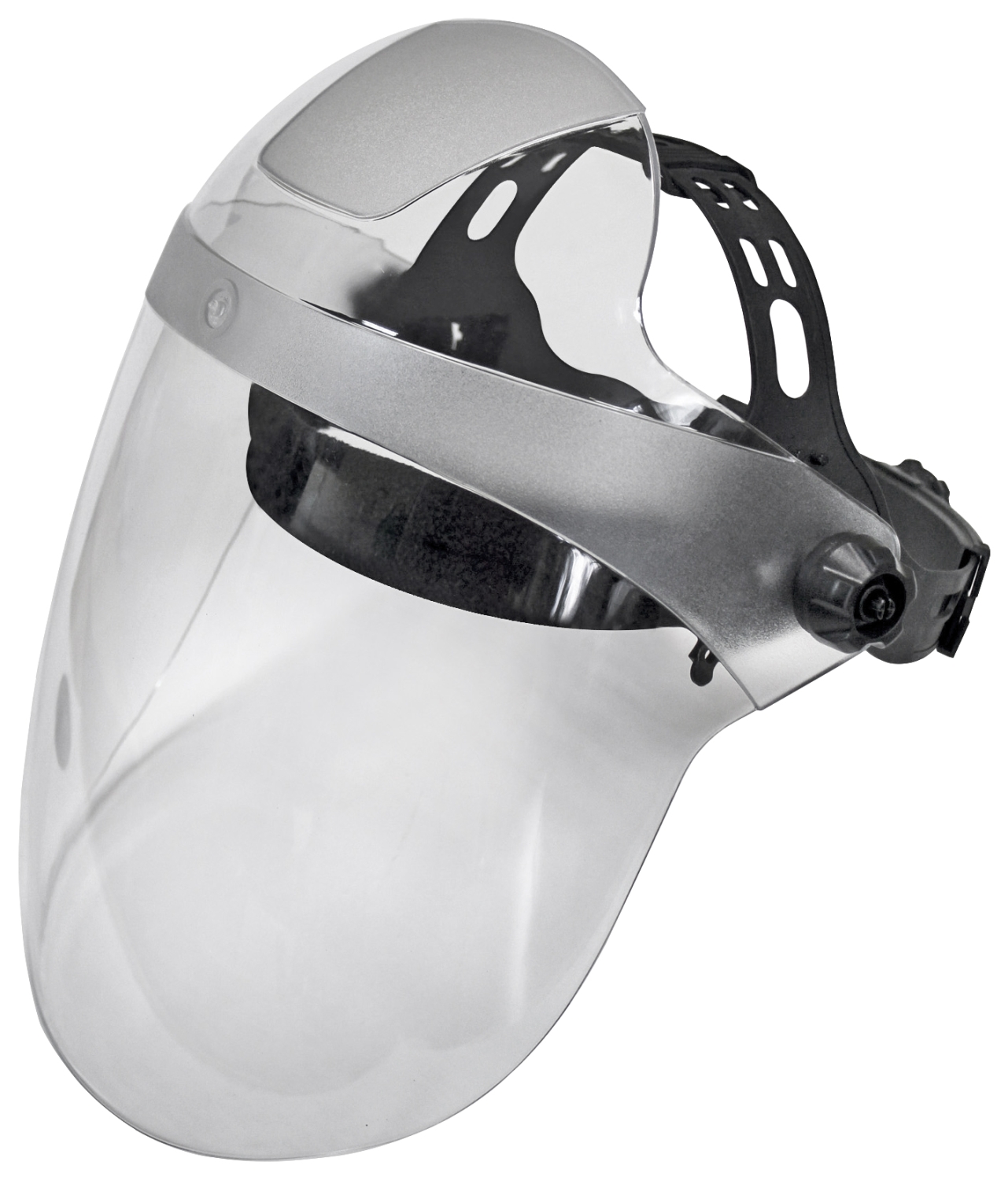 Щиток защитный поликарбонатный «Профи». Оголовье с храповым механизмом. Предназначен для индивидуальной защиты глаз и лица от воздействия твердых частиц камня, дерева, металла и т.п. при механической обработке поверхностей, а так же в быту при работе с пневмо- и электроинструментом, ландшафтных работах и т.п. Оптически прозрачный экран. Толщина щитка: 2,2 мм - 2,5 мм. Материал: поликарбонат, пластик.