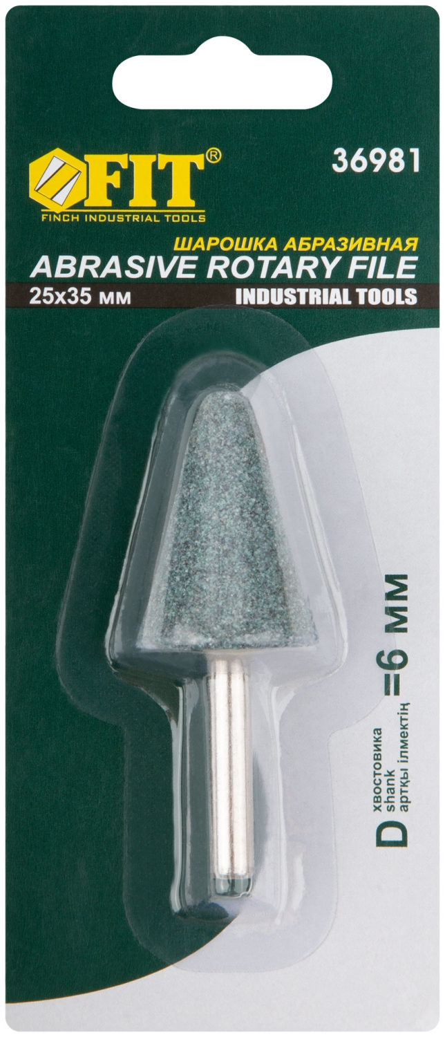 Шарошка абразивная по камню, мрам.,каф., хвостовик 6 мм, конус с закругл. 25х35 мм