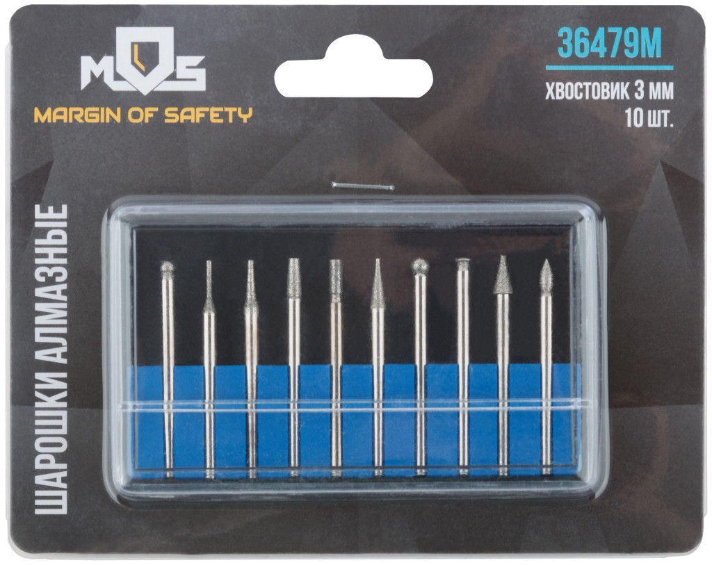 Шарошки усилен. сталь с алмаз. напылен., штифт 3 мм, 10 шт.