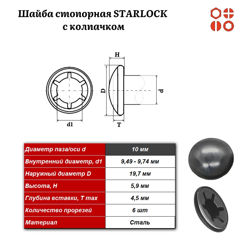 Шайба стопорная STARLOCK М6 с колпачком без покрытия, 1000 шт. шстопслколпМ6бп 1 шт.
