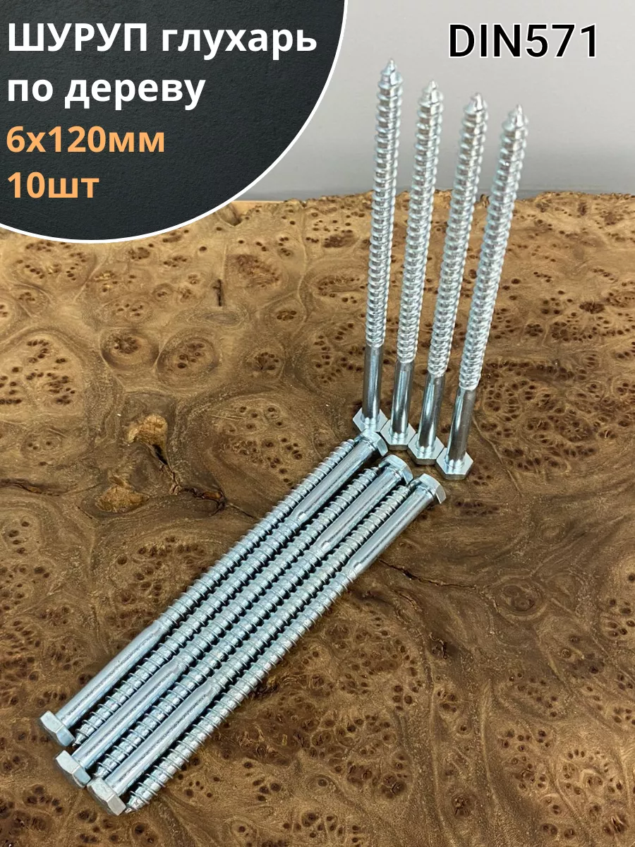 Шуруп глухарь по дереву 6х120, 10 шт.