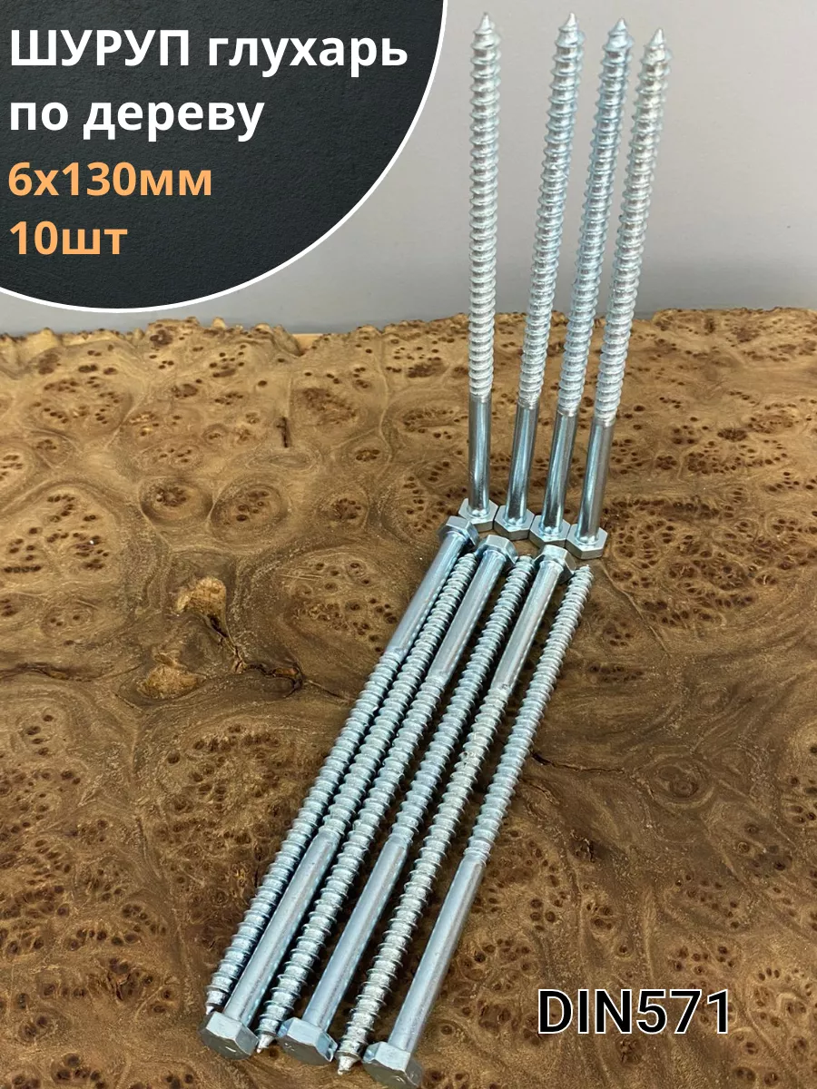 Шуруп глухарь по дереву 6х130, 10 шт.