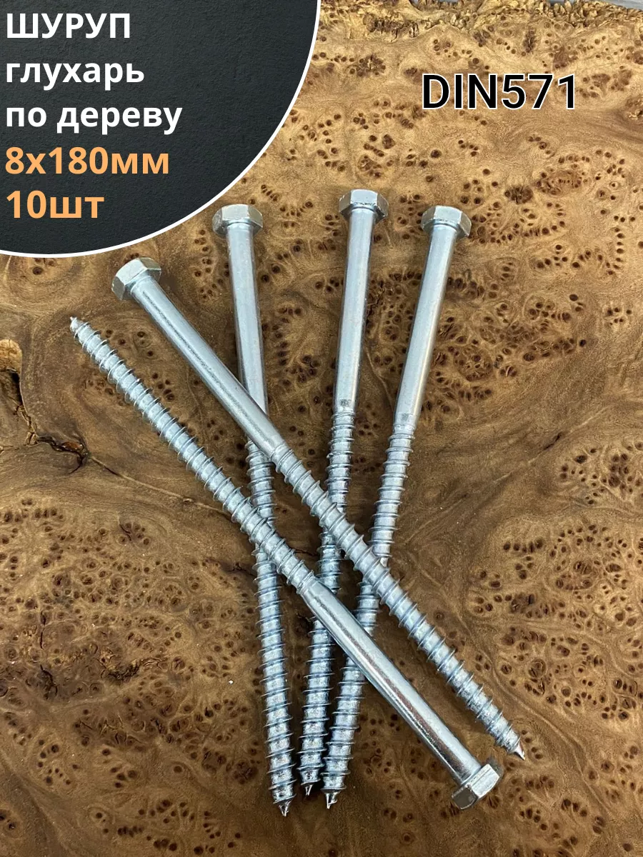 Шуруп глухарь по дереву 8х180 , 10 шт.