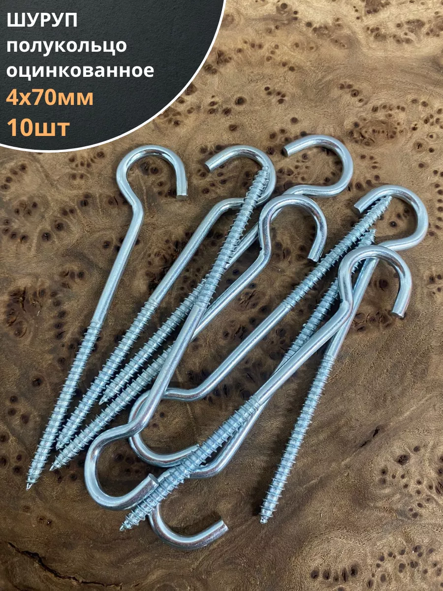 Шуруп-полукольцо, 4х70 , оцинкованное 10 шт.