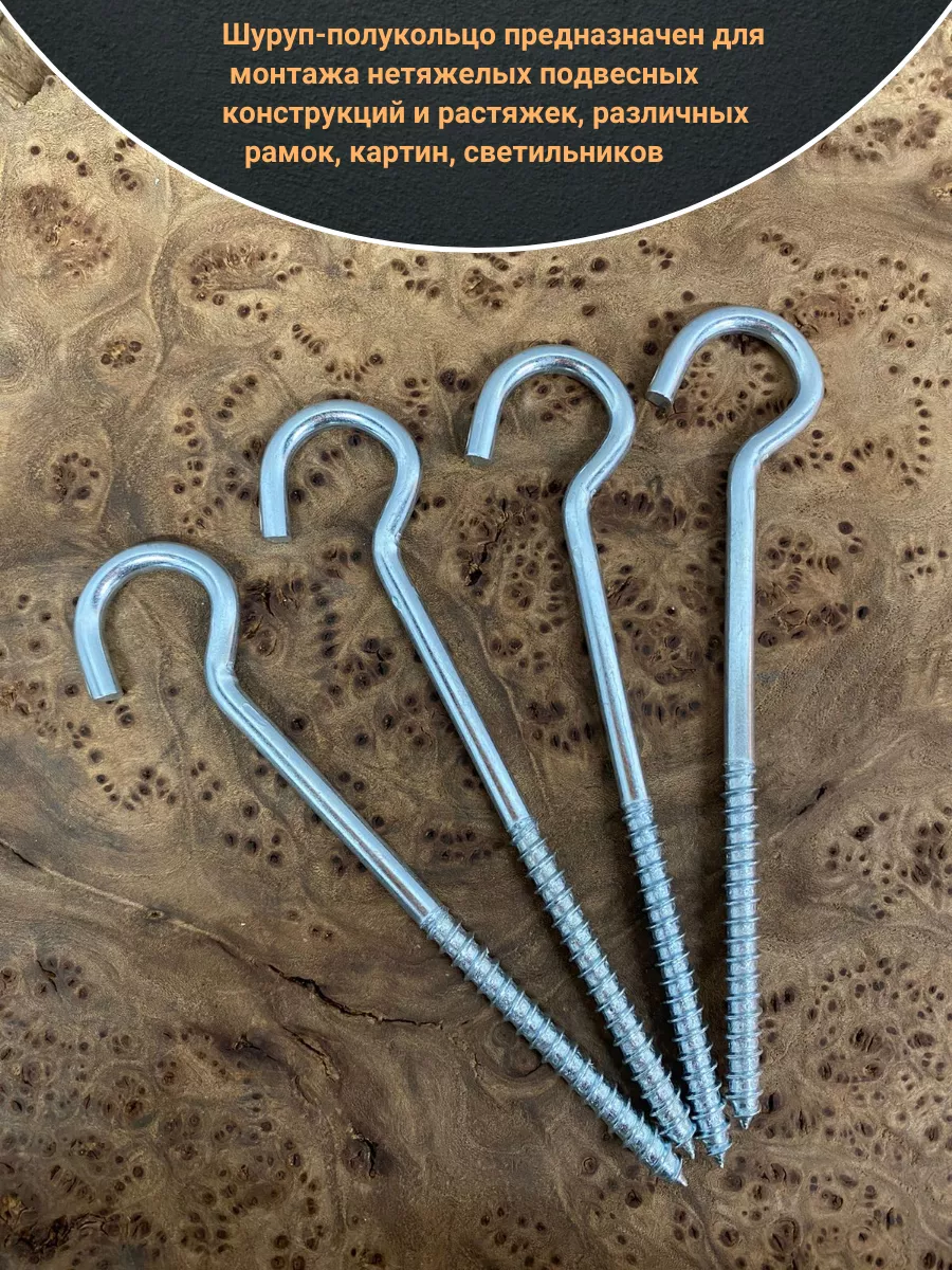 Шуруп-полукольцо, 6х100 , оцинкованное 10 шт.