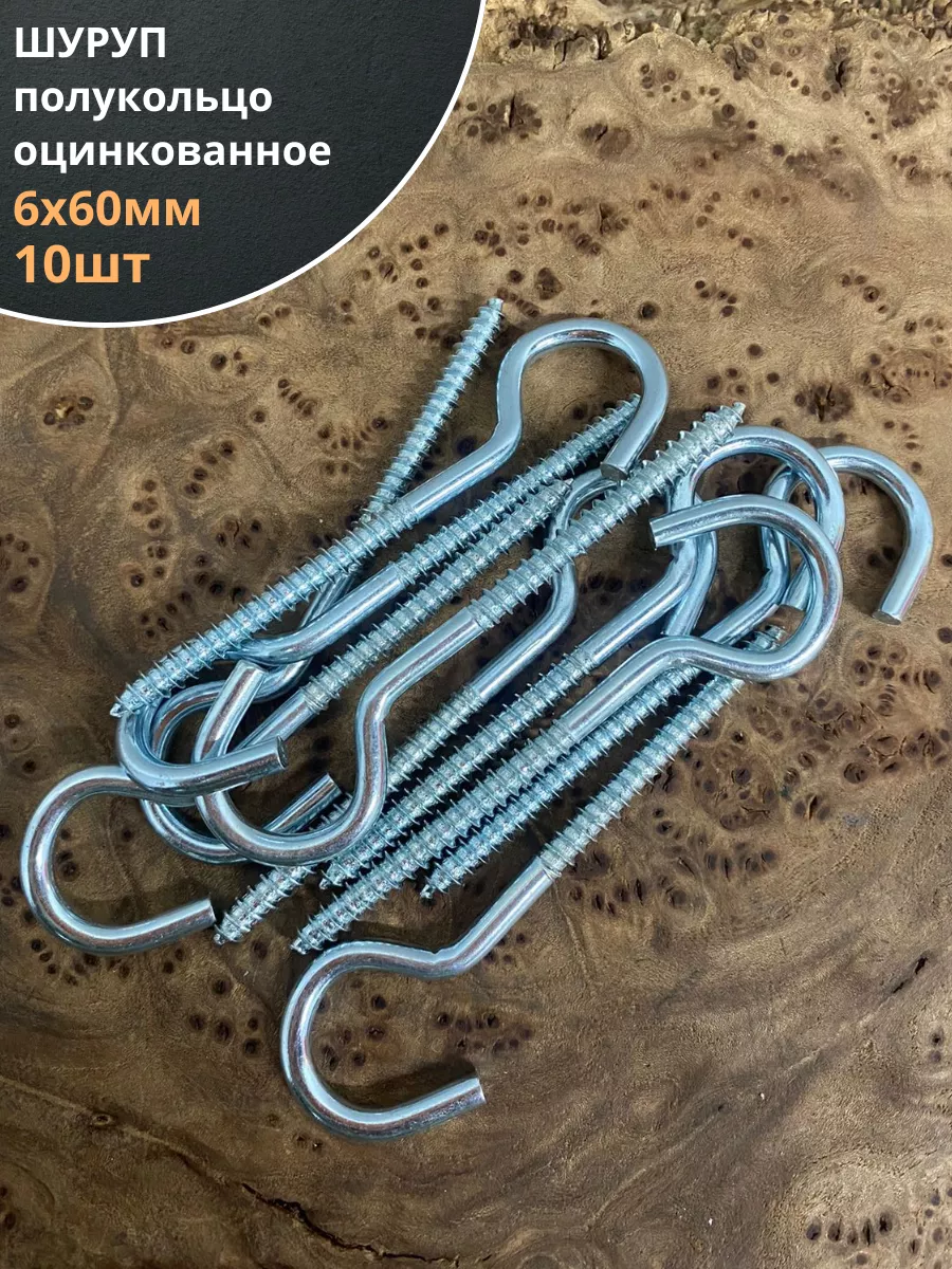 Шуруп-полукольцо, 6х60 , оцинкованное 10 шт.
