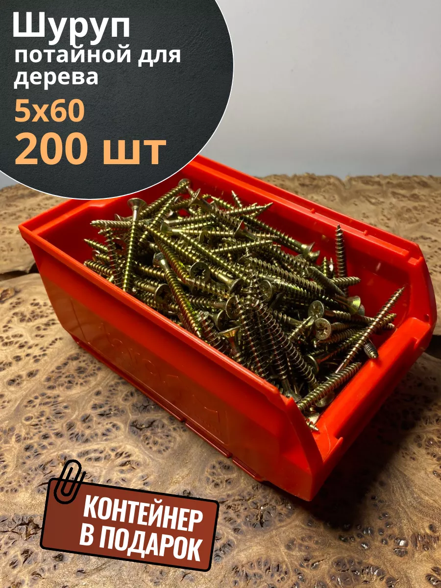 Шуруп потайной для дерева 5х60 ЖЦ, в контейнере, 200 шт.