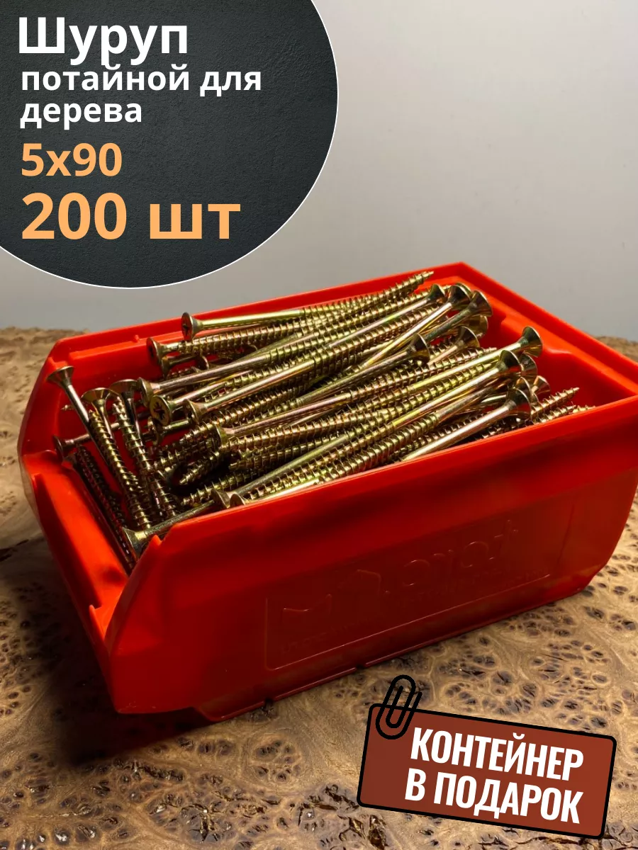 Шуруп потайной для дерева 5х90 ЖЦ, в контейнере, 200 шт.