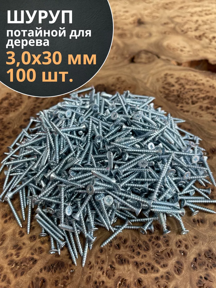 Шуруп потайной для дерева Б 3,0х30 БЦ, 100 шт.