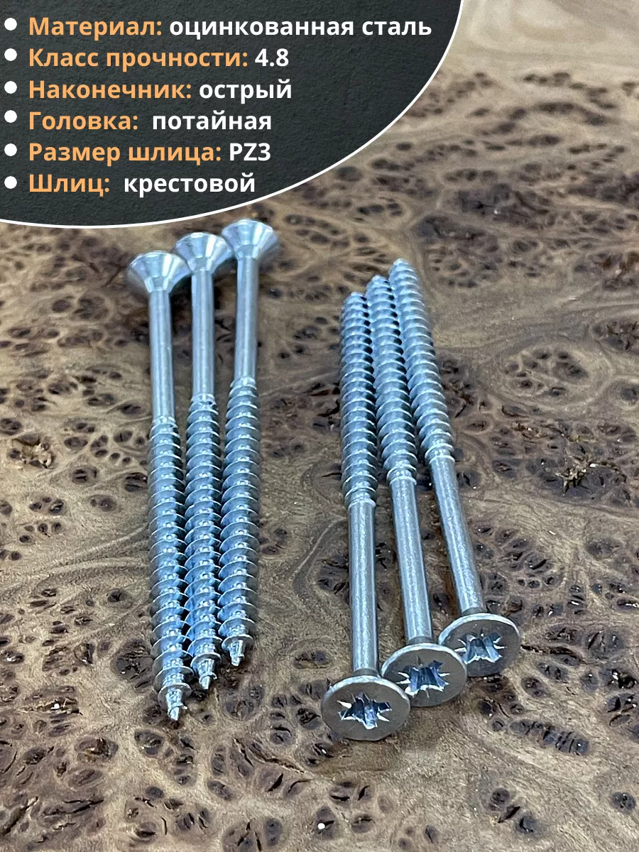 Шуруп потайной для дерева Б 6,0х100 БЦ, 100 шт.