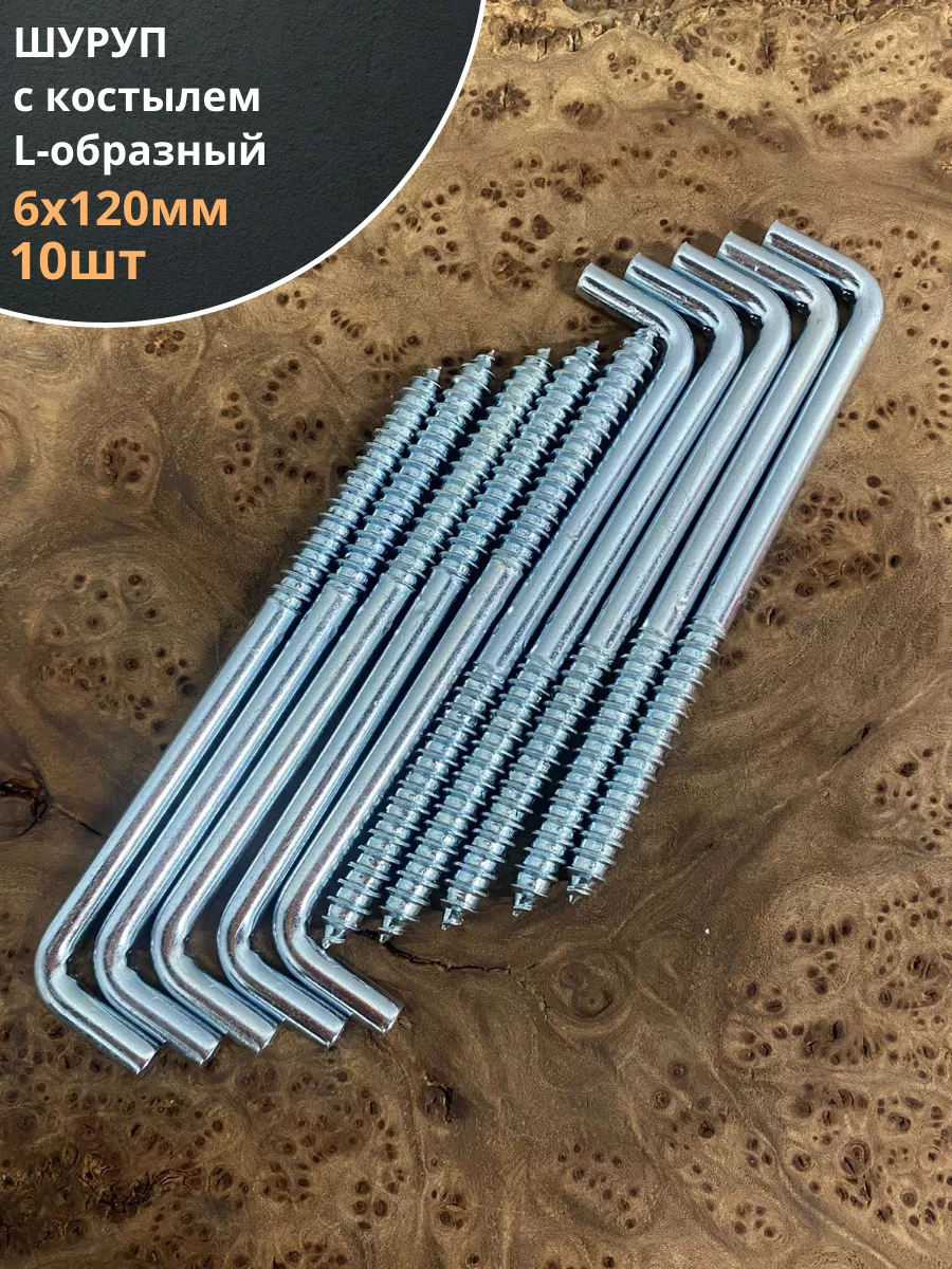 Шуруп с костылем L-образный 6х120, 10 шт.