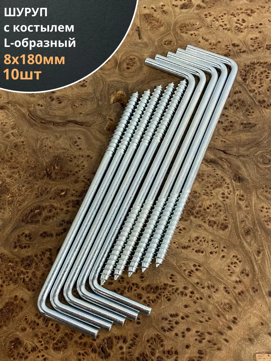 Шуруп с костылем L-образный 8х180, 10 шт.