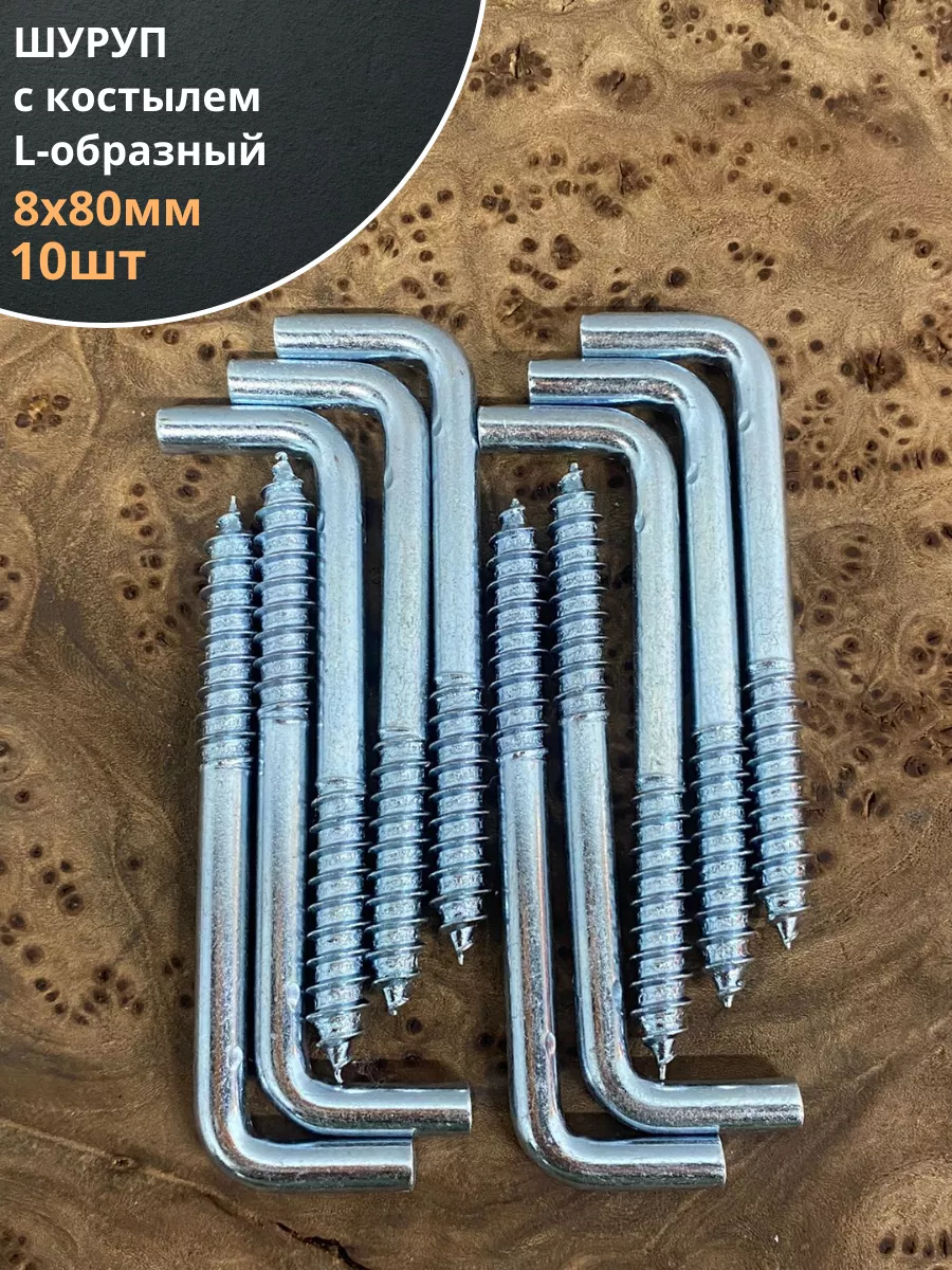 Шуруп с костылем L-образный 8х80, 10 шт.