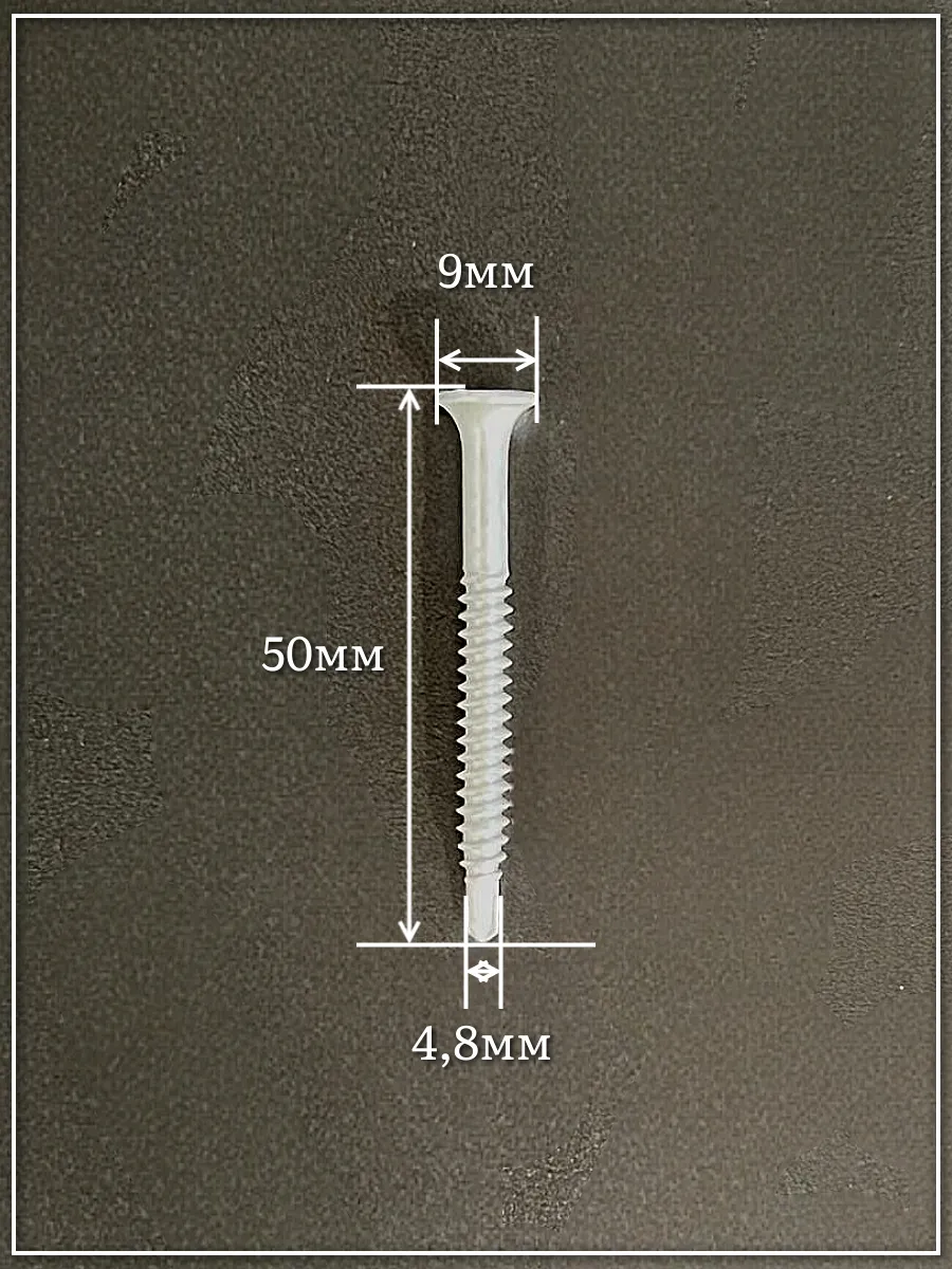 Шуруп саморез потай со сверлом 4,8х50 мм - это разновидность крепежа, который применяется для закрепления металлических или стальных деталей. Крепежный элемент имеет потайную головку с крестообразным шлицем PH. Он упрощает закручивание самореза, позволяя вкручивать крепеж в поверхность без просверленного заранее отверстия, и предотвращает возможные повреждения и деформацию материала. Потайная головка позволяет скрыть саморез и создать более эстетичный вид соединений.