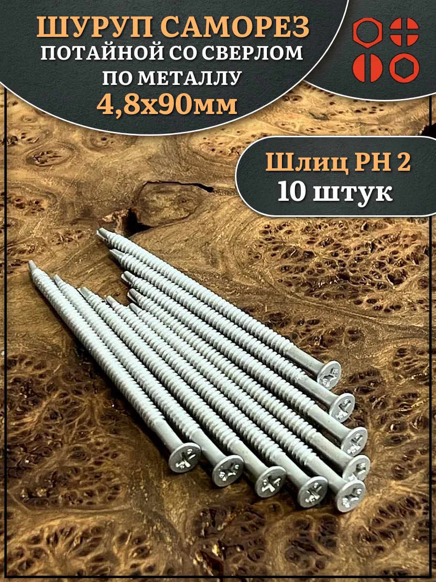 | Шуруп саморез потай со сверлом 4,8х90 мм, 10 шт. | 13-0935ф10 | 1 шт. |