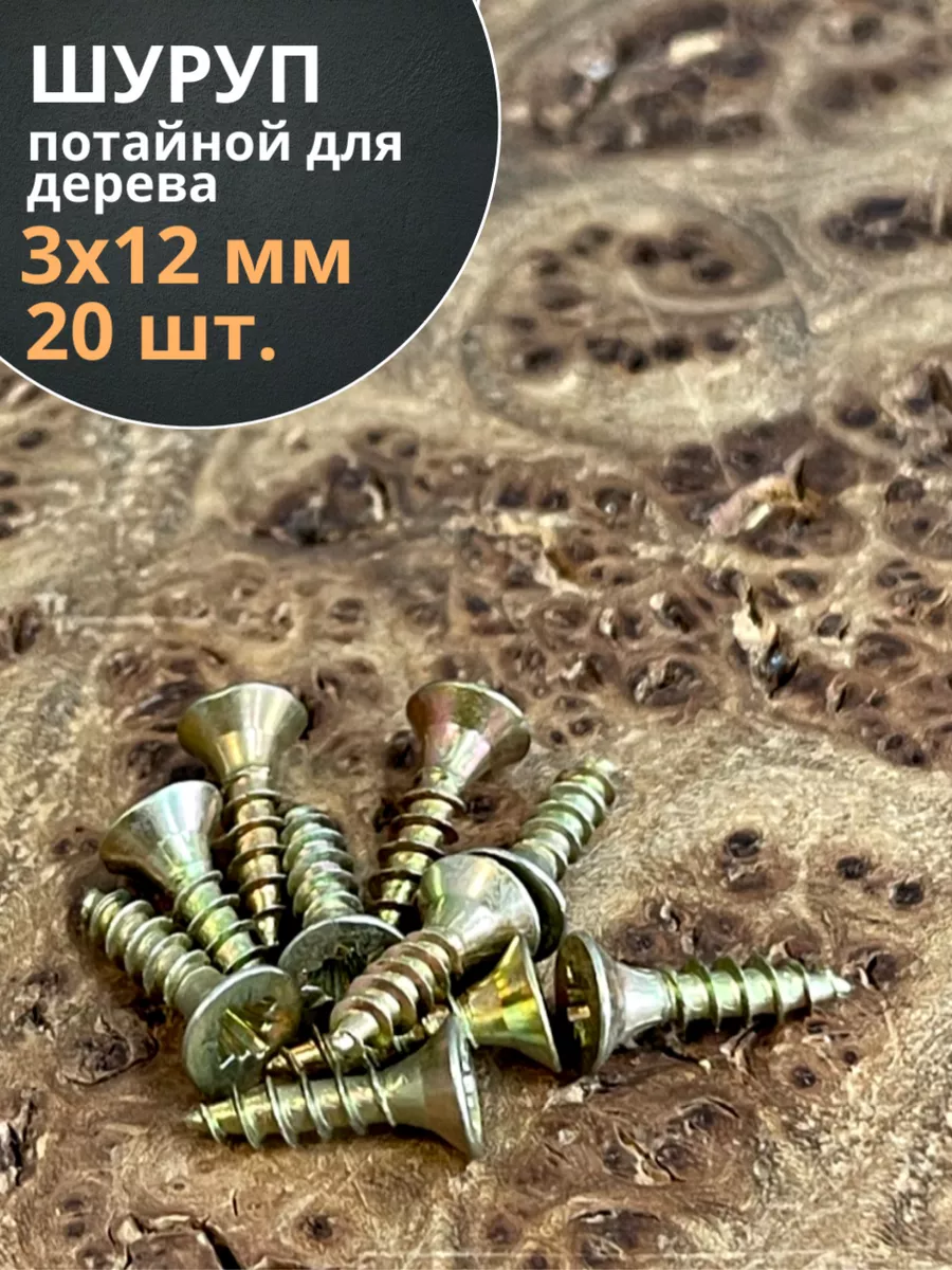 Шуруп саморез потайной для дерева 3х12 ЖЦ, 20 шт.