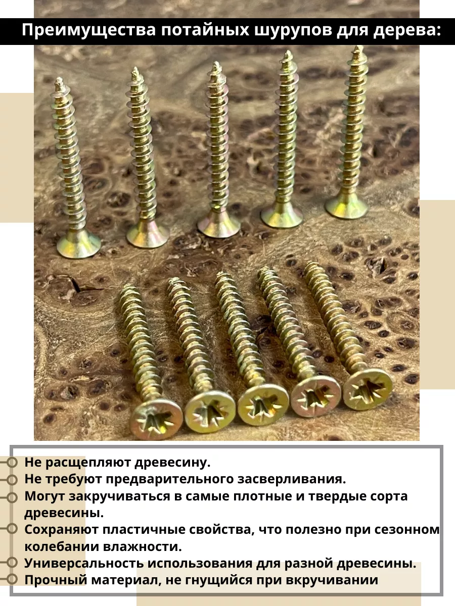 Шуруп саморез потайной для дерева 3х25 мм, желтый цинк, 1 кг.
