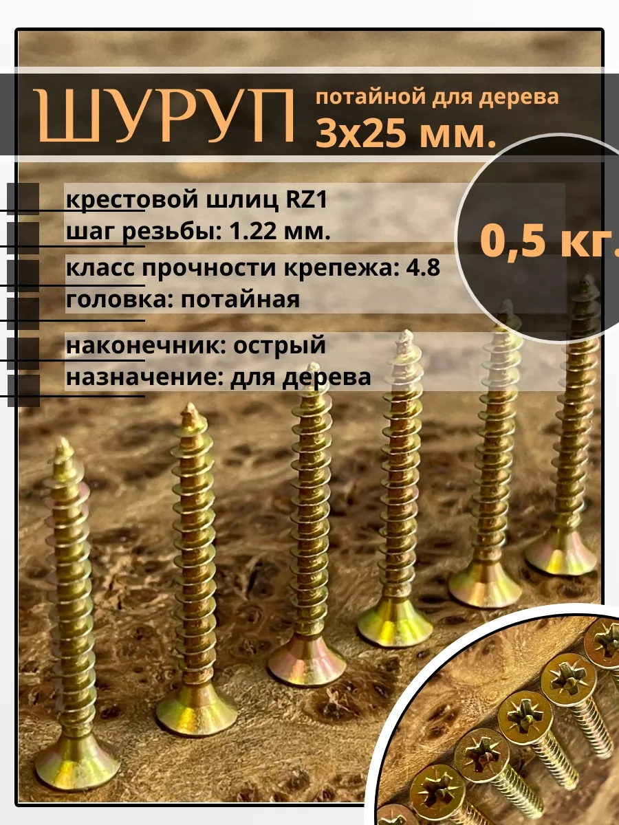 | Шуруп саморез потайной для дерева 3х25 ЖЦ, 0,5 кг. | B04003002563S07г500 | 1 шт. |