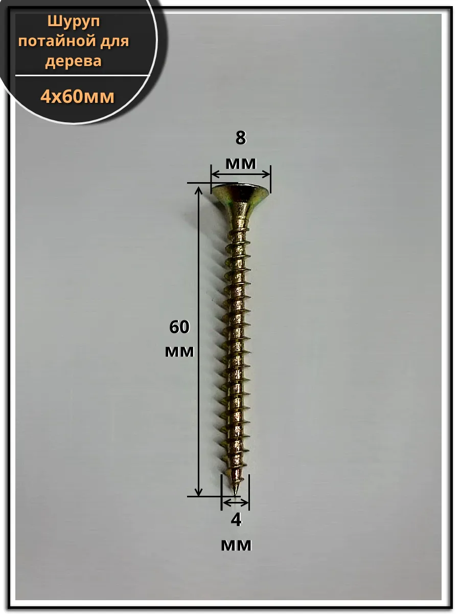Шуруп саморез потайной для дерева 4х60 мм, желтый цинк, 1 кг.