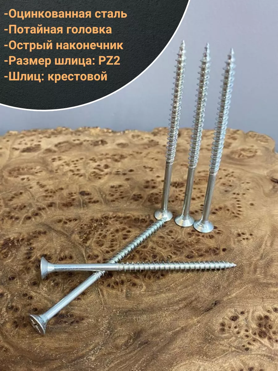Универсальные шурупы с потайной головкой изготовлены из углеродистой стали и закалены для придания твердости поверхности и сердцевины. Для снижения рисков развития коррозии на них на нанесено гальваническое цинковое покрытие с белой пассивацией, которое улучшает защитные свойства цинка и придает гладкий блестящий внешний вид.