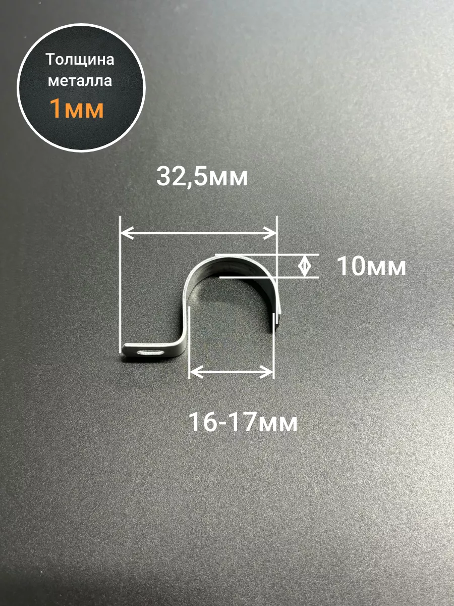 Скоба однолапковая 16 мм металлическая, 10 шт.