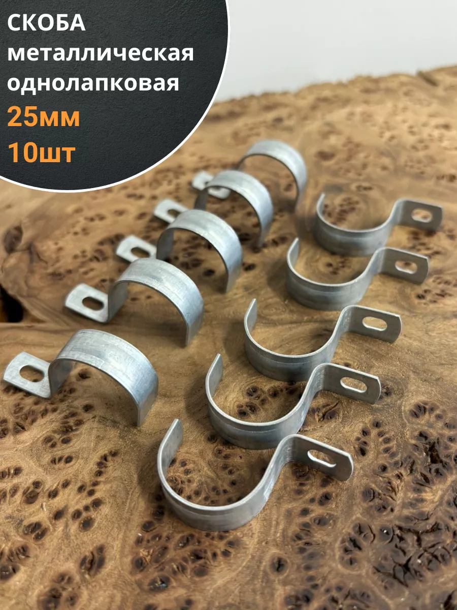 Скоба однолапковая 25 мм металлическая, 10 шт.