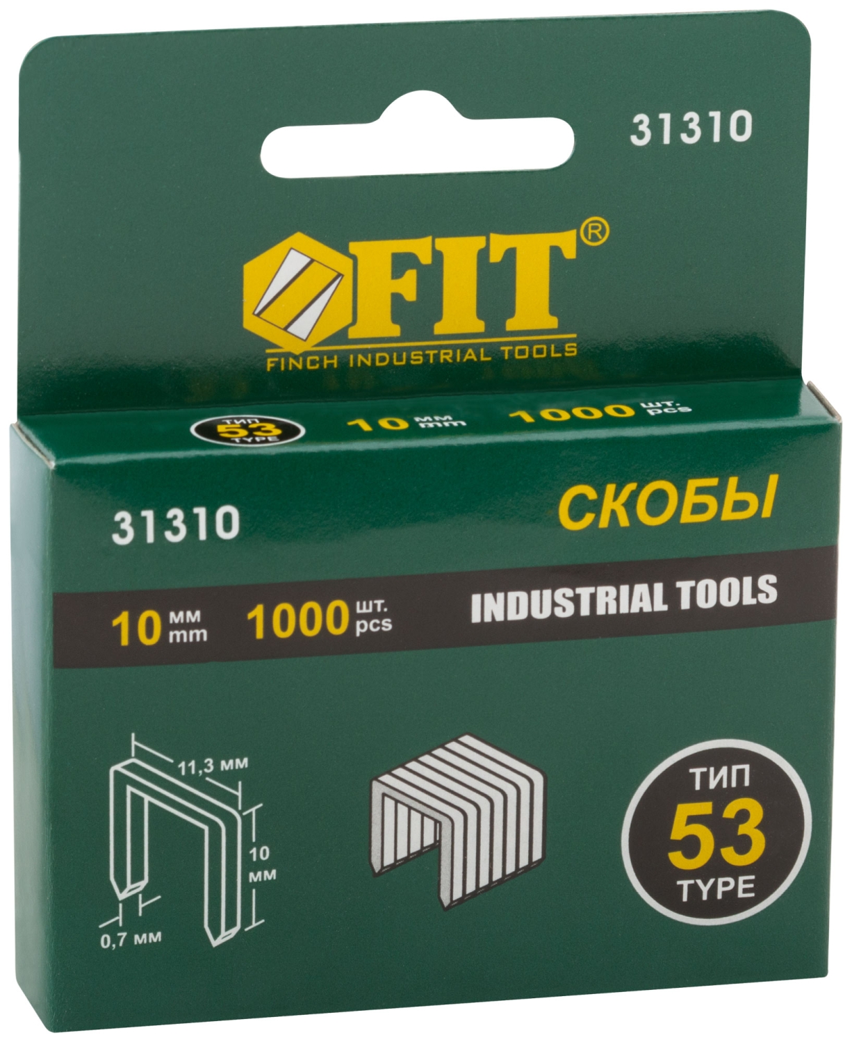 Скобы для степлера закален,прямоуг. 11,3 х 0,7 мм (узк.тип 53) 10 мм 1000 шт