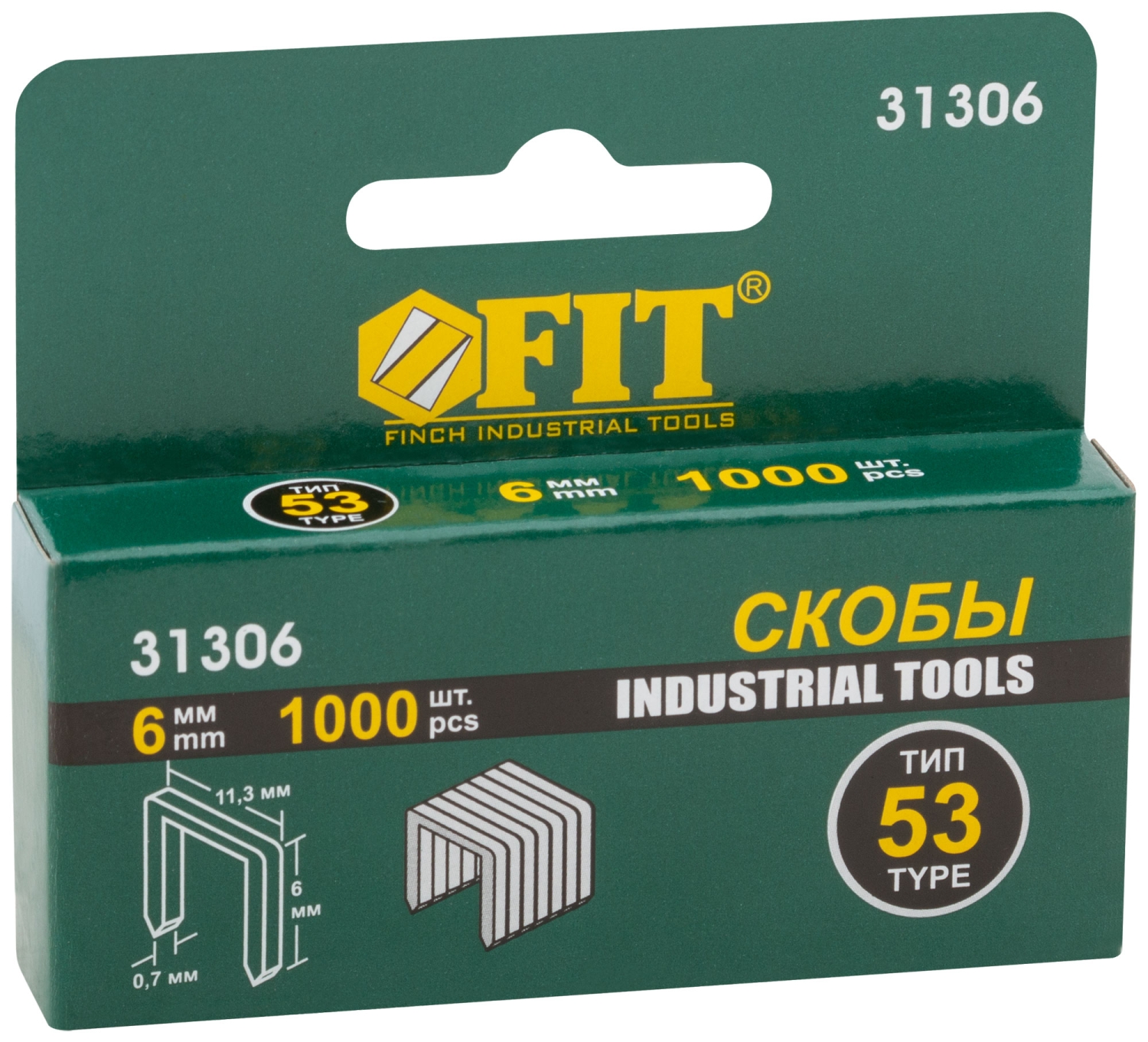 Скобы для степлера закален,прямоуг. 11,3 х 0,7 мм (узк.тип 53) 6 мм 1000 шт