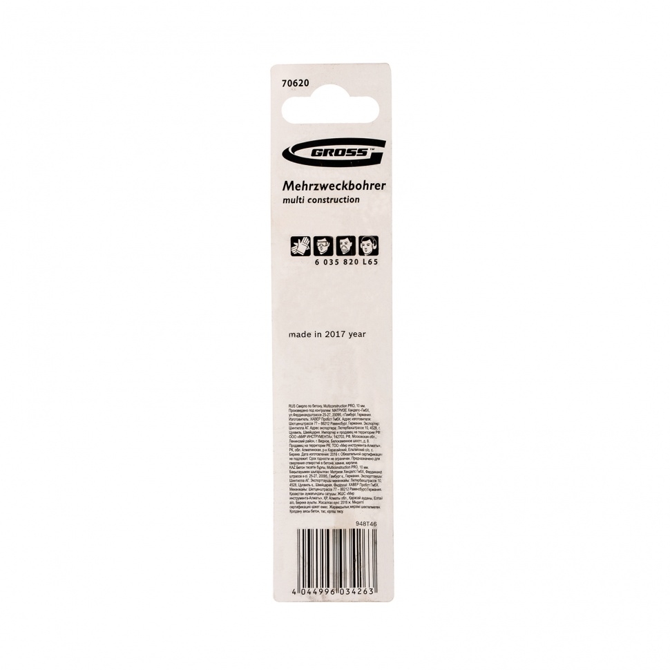 Сверло по бетону Gross Multiconstruction Pro 70620 позволяет получать в камне, бетоне и кирпиче отверстия диаметром 10 мм. Подходит для работ по металлу и дереву, поэтому сверлом можно подряд сверлить разные материалы без замены оснастки. Сверло по бетону 10 будет полезно во время строительства и ремонта, а также пригодится в быту. Прочность — сверло по бетону для шуруповерта выполнено из высоколегированной стали и прошло индукционную закалку, поэтому выдерживает динамические нагрузки. Высокий ресурс работоспособности — режущая пластина из сплава карбида вольфрама твердостью 80-90 HRC, прошедшая алмазную заточку, изготовлена компанией Ceratizit, что подтверждает ее надежность. Устойчивость к ударным нагрузкам — твердосплавная пластина сверла 10 мм надежно закреплена высококачественным припоем. Эффективность сверла для бетона — продуманная форма спирали способствует быстрому удалению продуктов сверления, что повышает производительность сверла по бетону 10 мм и увеличивает срок его службы. Гарант