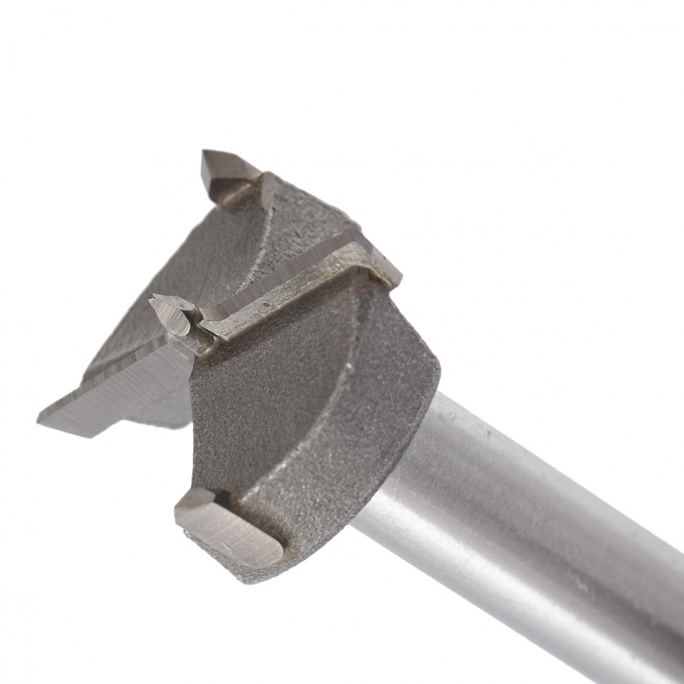 Сверло Форстнера по дереву Сибртех 704828 с цилиндрическим хвостовиком, используется для получения глухих отверстий диаметром 28 мм в древесине, ДСП, ДВП и других материалах. Благодаря продуманной конструкции инструмента стенки и дно отверстий получаются ровными и гладкими. Сверло применяют для производства мебели, а также отделочных работ. Сверло Форстнера изготовлено из стали 45, поэтому устойчиво к механическим нагрузкам. Благодаря твердосплавным пластинам из сплава ВК8 твердостью 86-92 HRC инструмент характеризуется высокой производительностью и продолжительным ресурсом работоспособности. Центрирующее острие удерживает сверло по дереву на заданной оси, что облегчает засверливание и позволяет получить ровное отверстие.
