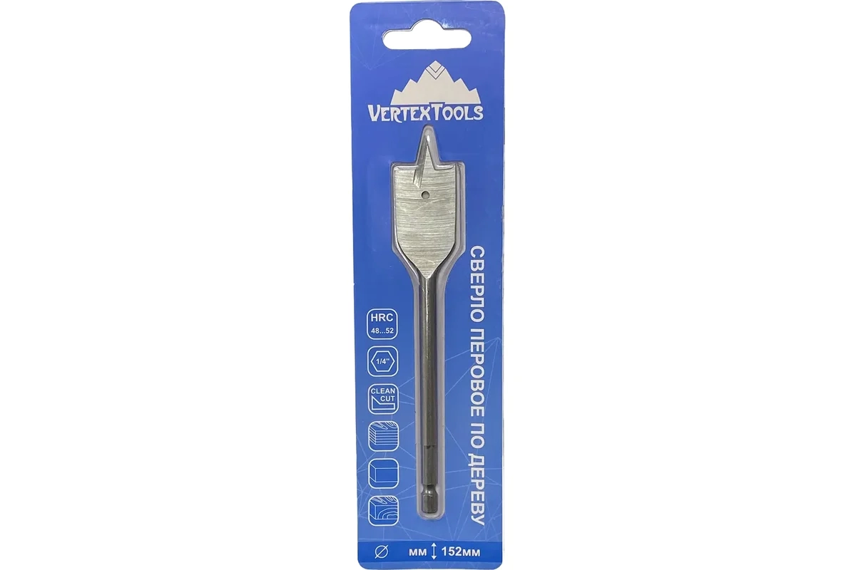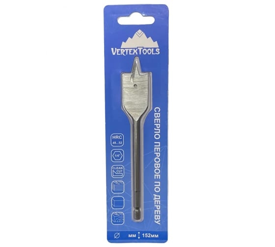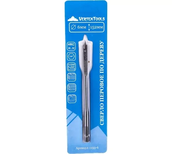 Сверло по дереву перовое Vertextools 1133-22 с шестигранным хвостовиком предназначено для дрелей, шуруповертов. Подходит для работы с древесиной, ДСП, МДФ, фанерой, гипсокартоном. Сверло изготовлено из инструментальной стали, закаленной в рабочей части. Оснащено очерчивающим остриём, что позволяет получить ровное, цельное отверстие. Шестигранный хвостовик обеспечивает надежное закрепление в патроне. Перовое сверло имеет высокий коэффициент производительности и позволяет выполнить отверстия различного диаметра. Для получения наилучшего результата и чтобы продлить период эксплуатации, соблюдайте правила: Начинайте сверлить на малых оборотах дрели постепенно добавляя, но не более 300-450 об/мин. Такой подход позволяет добиться более качественных результатов и сохраняет сверло от деформации. Устанавливайте сверло выдержав угол в 90.