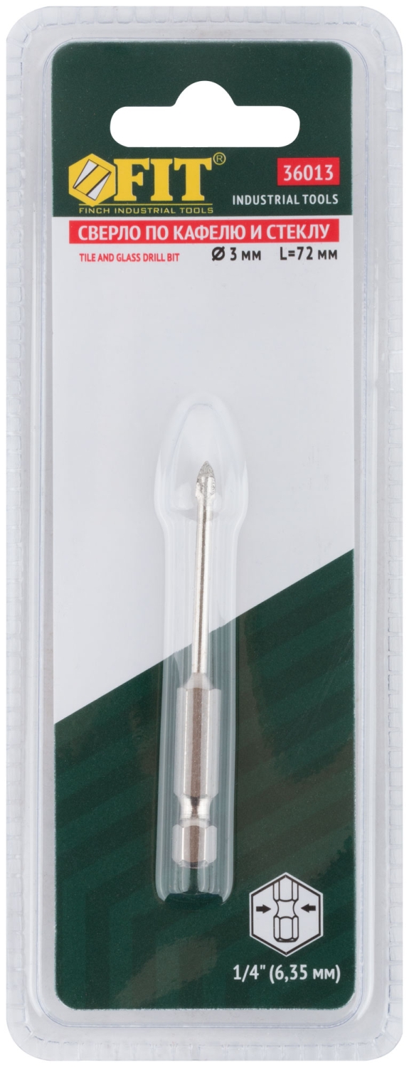 Сверло по кафелю шестигранный U-хвостовик под биту, 3 мм
