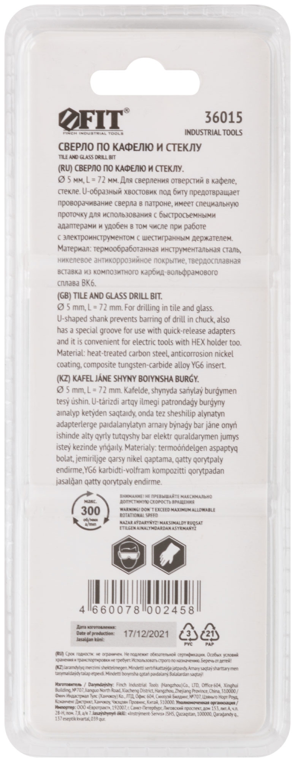 Сверло по кафелю шестигранный U-хвостовик под биту, 5 мм