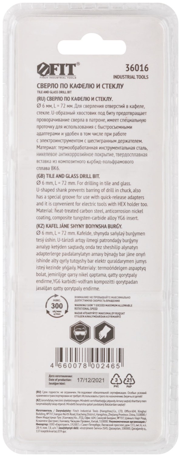 | Сверло по кафелю шестигранный U-хвостовик под биту, 4 мм | 36014 | 1 шт. |