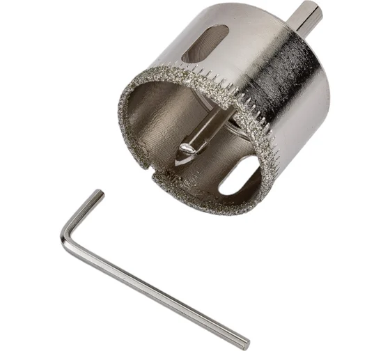 Сверло Сибртех 72720, 40 х 55 м, с 6-гранным хвостовиком и центрирующим сверлом позволяет сверлить отверстия в керамической плитке и стекле. Его устанавливают на дрель или шуруповерт, рекомендуемый диапазон рабочих оборотов 350-700 об/мин. Благодаря 6-гранному хвостовику сверло не проворачивается в патроне электроинструмента. После заглубления алмазной коронки на 1-2 мм рекомендуется снять центрирующее сверло, это поможет увеличить его ресурс. Применение водяного охлаждения значительно повышает срок службы оснастки. Ее используют при выполнении бытовых ремонтных и отделочных работ.