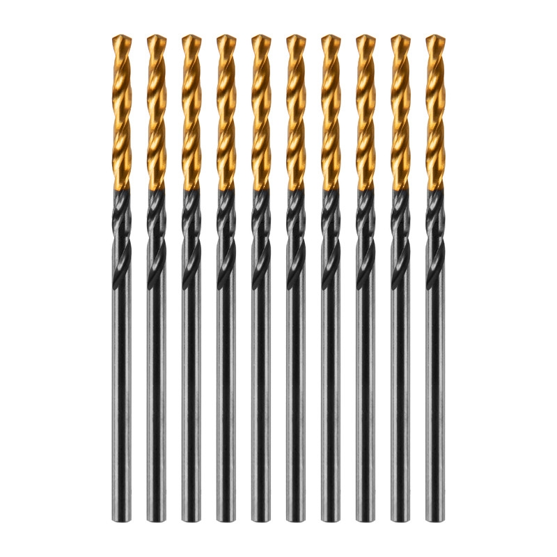 Сверло по металлу Denzel Golden Tip из стали HSS-TiN, 10 шт. в упаковке, используется для получения отверстий в стальных заготовках. Оснастка вышлифована на современном оборудовании и имеет класс точности A1, что позволяет получить отверстия высокого качества. Набор применяется во время слесарных работ.Прочность — сверла из быстрорежущей стали устойчивы к перегреву и выдерживают высокие нагрузки.