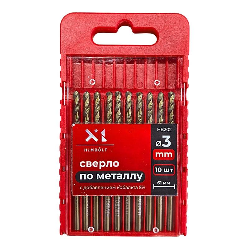 Сверло по металлу с кобальтом 5% P6M5K5 3,0 мм HIMBOLT 10 шт.пластиковый бокс