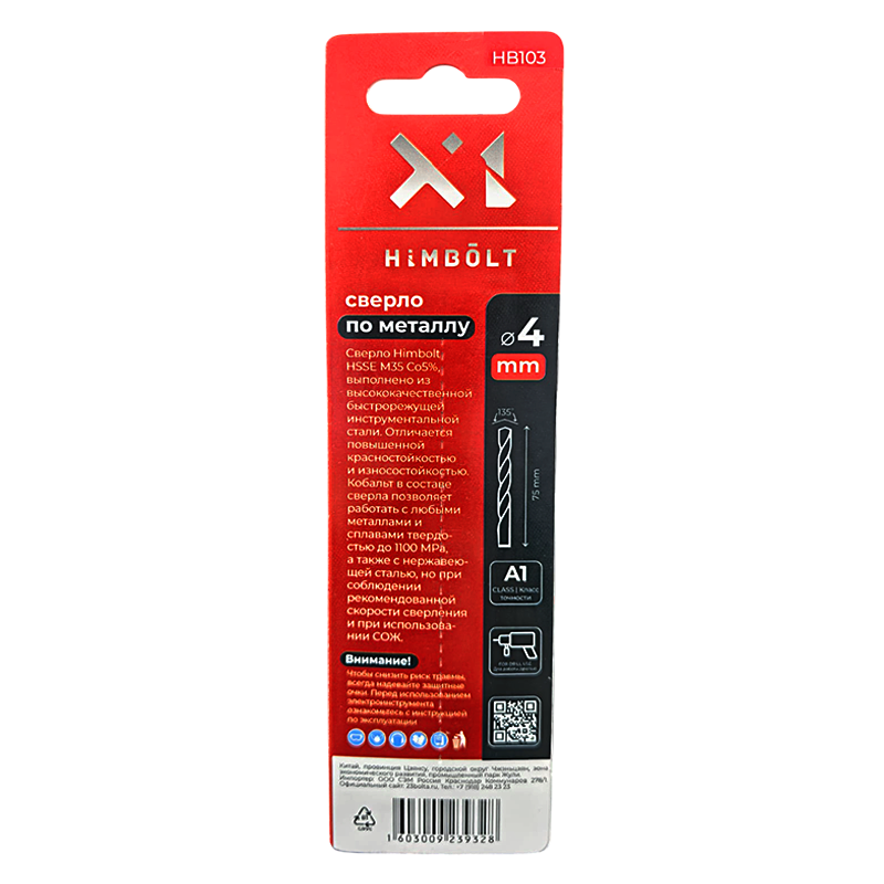 Сверло по металлу с кобальтом 5% P6M5K5 4,0 мм HIMBOLT 2 шт.блистер