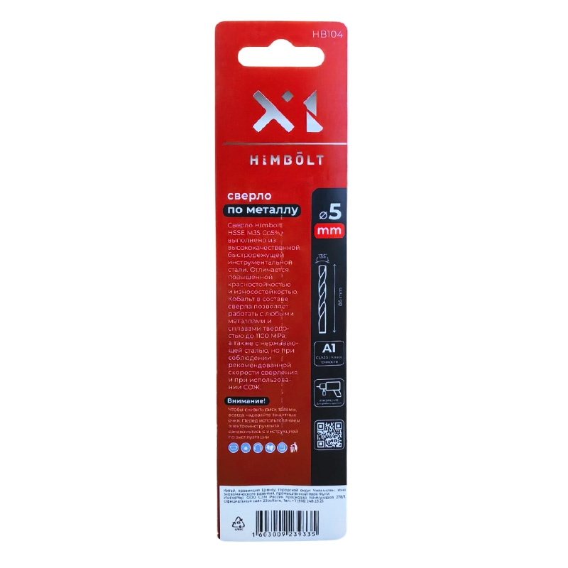 Сверло по металлу с кобальтом 5% P6M5K5 5,0 мм HIMBOLT 2 шт.блистер