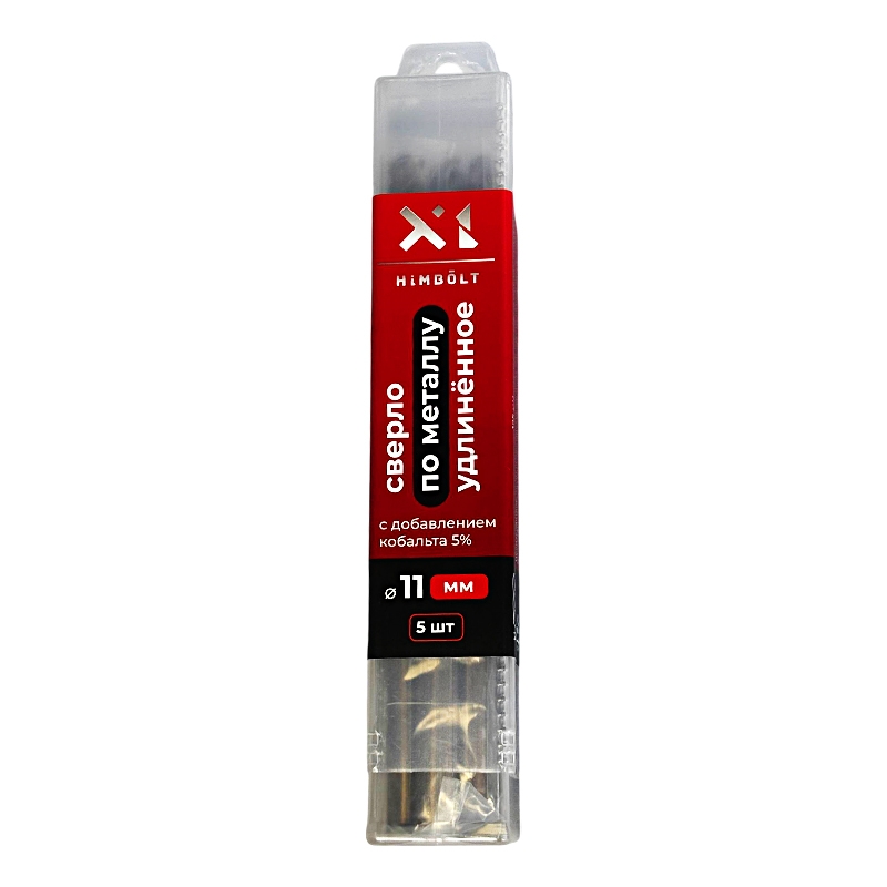 Сверло по металлу с кобальтом 5% P6M5K5 удлиненное 11,0 мм HIMBOLT 5 шт.пластиковый бокс