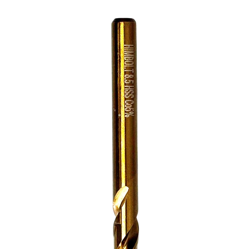 Cверло Himbolt HSSE М35 Сo5%, выполнено из высококачественной быстрорежущей инструментальной стали. Отличается повышенной красностойкостью и износостойкостью. Кобальт в составе сверла позволяет работать с любыми металлами и сплавами твердостью до 1100 МРа, а также с нержавеющей сталью, но при соблюдении рекомендованной скорости сверления и при использовании СОЖ. Угол заточки 135°.