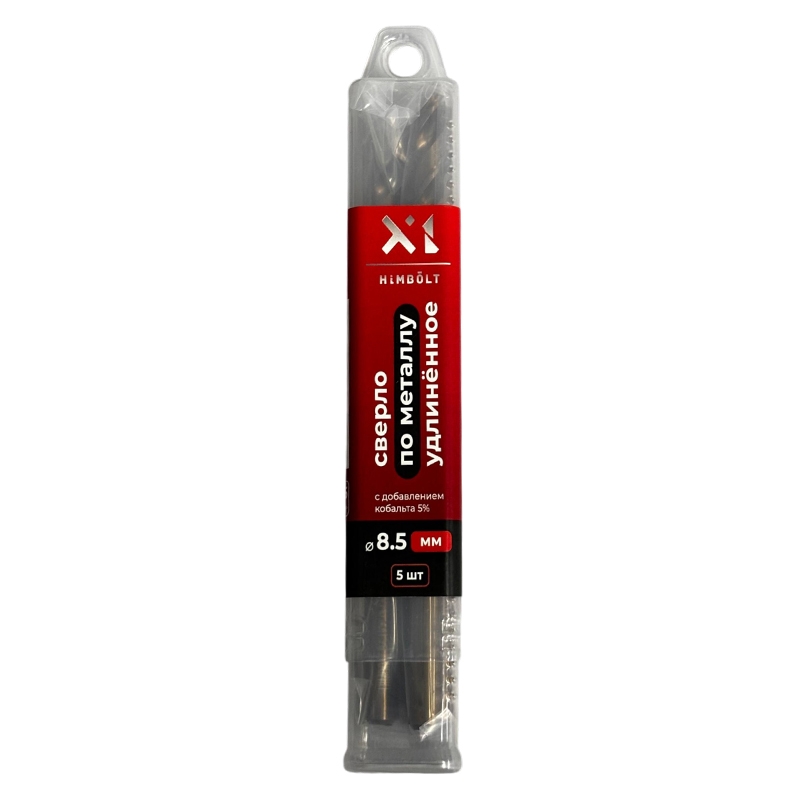 Сверло по металлу с кобальтом 5% P6M5K5 удлиненное 8,5 мм HIMBOLT 5 шт.пластиковый бокс