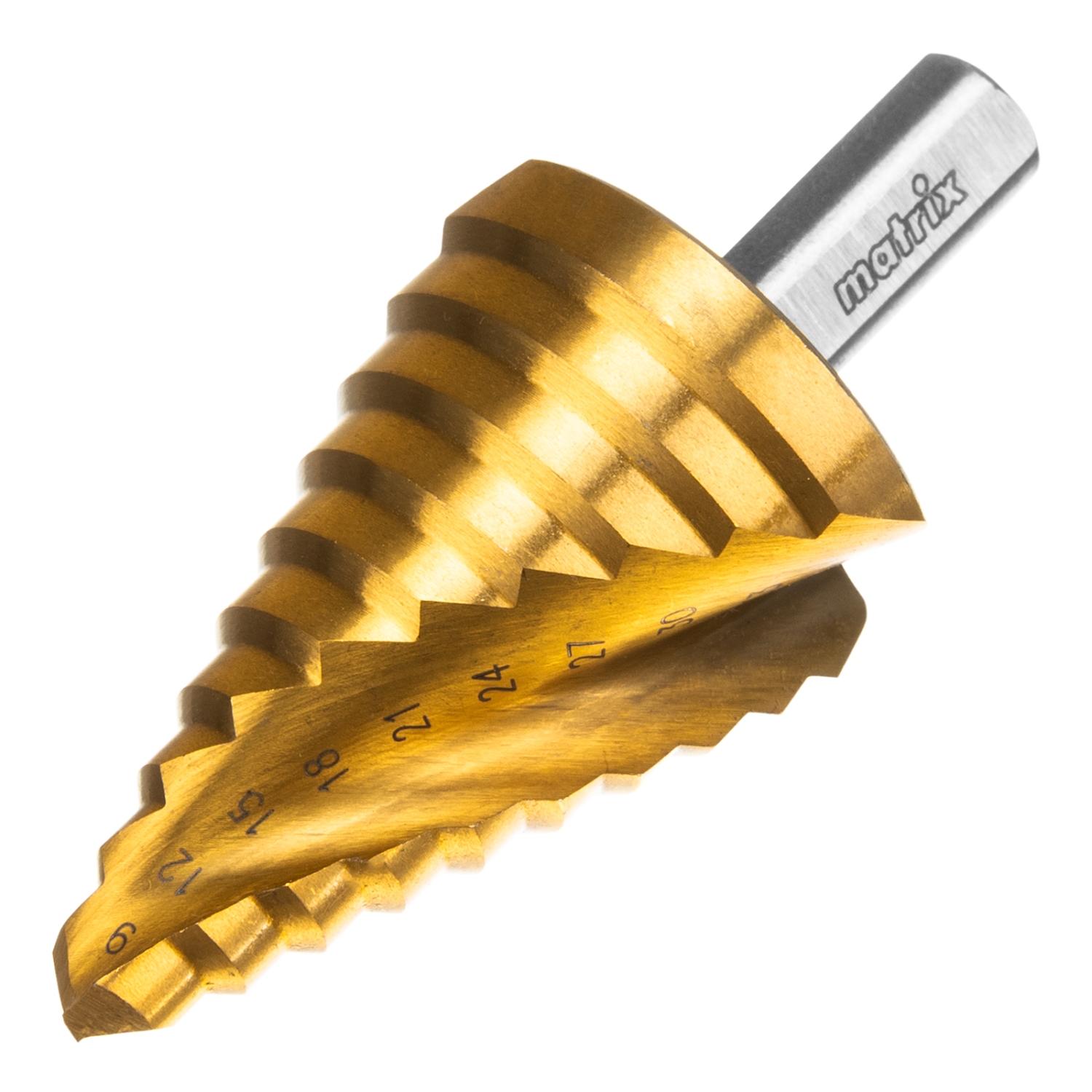 Сверло ступенчатое 9-12-15-18-21-24-27-30-33-36 мм,HSS,спирал.проф.,трехгр.хв Matrix