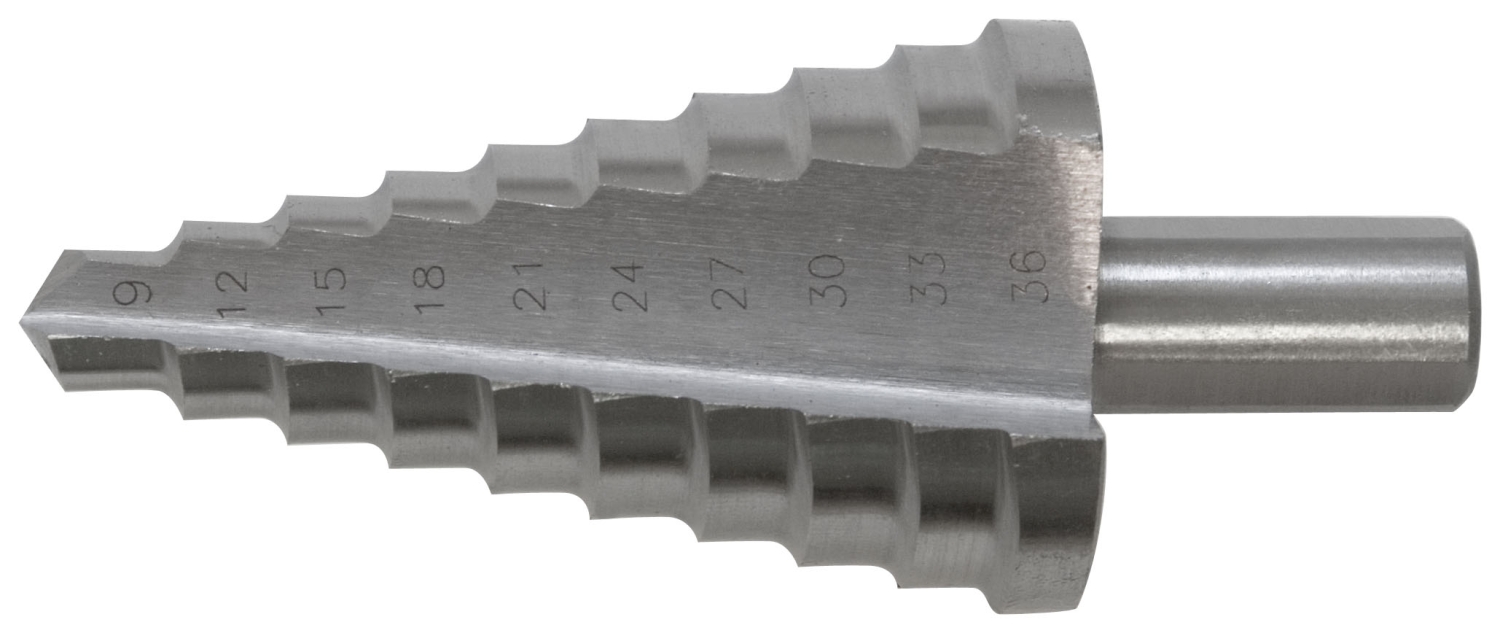 Сверло ступенчатое по металлу, HSS, спирал.проф.,10 ступеней, 9-36 мм