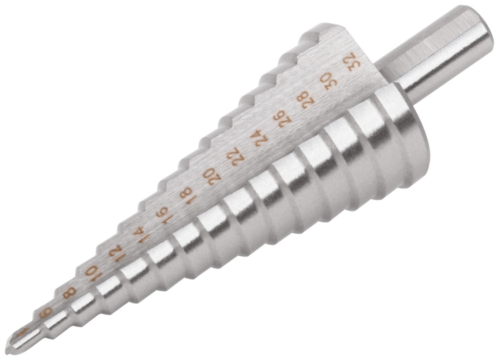 Сверло ступенчатое по металлу, HSS, 15 ступеней, 4-32 мм