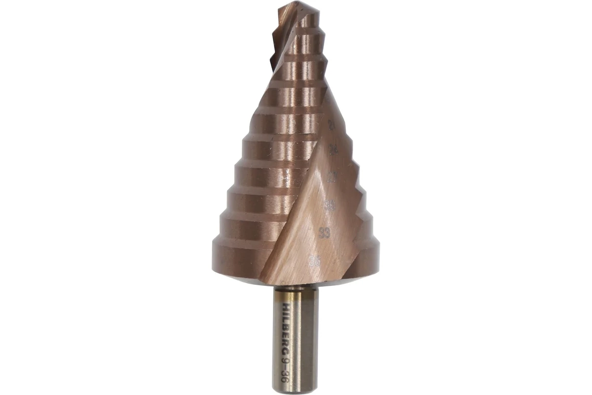 Сверло ступенчатое по металлу, HSS-COBALT, 10 ступеней, 9-36 мм P6M5 Hilberg